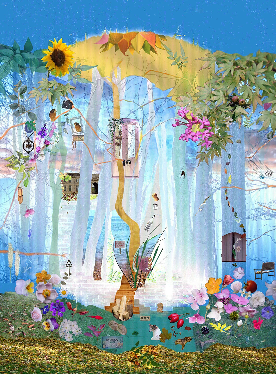 Digitally I have reused small fragments of images sourced online, adding props and other techniques to create populated landscapes, which are in fact seamless digital quilts. This was a new way of working, which came out of necessity when I was unable to travel in 2020.